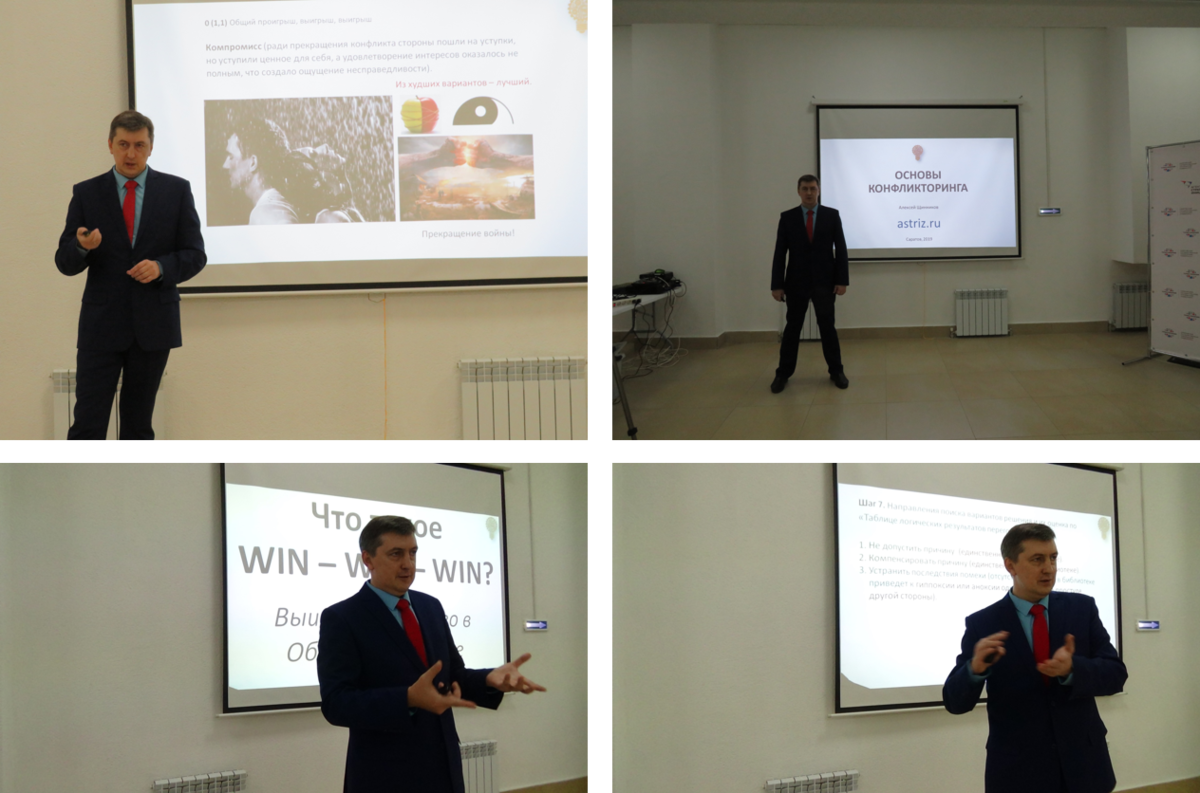 15 ноября / 2019 провели мастер-класс «Основы Конфликторинга» в Точке кипения СГТУ в г.Саратов. Планируем еще 6 до конца года: бизнес-конфликторинг, технический конфликторинг, семейный конфликторинг и др.